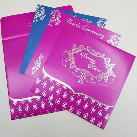 Hot Pink & Silver Foiled Indian Wedding Card: R-2021